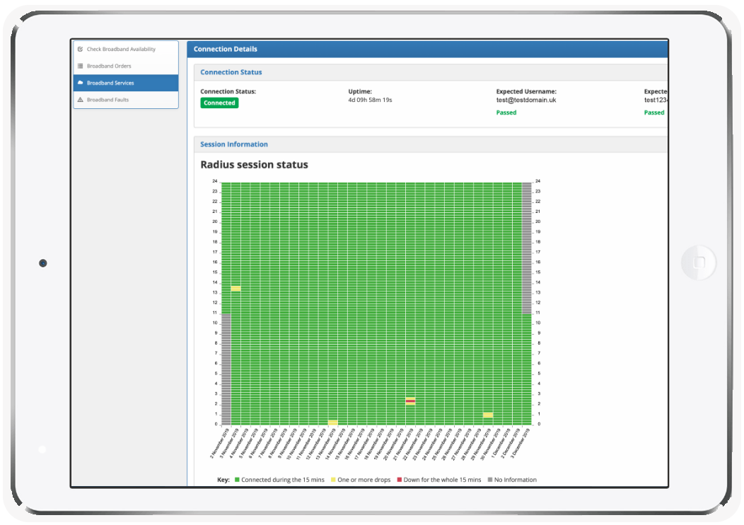 The Plustel portal allows you to check broadband availablity of a location by searching for the CLI or postcode. You can also place orders, and manage every aspect of your broadband service. Monitor network performance and uptime in easy-to-read graphs.